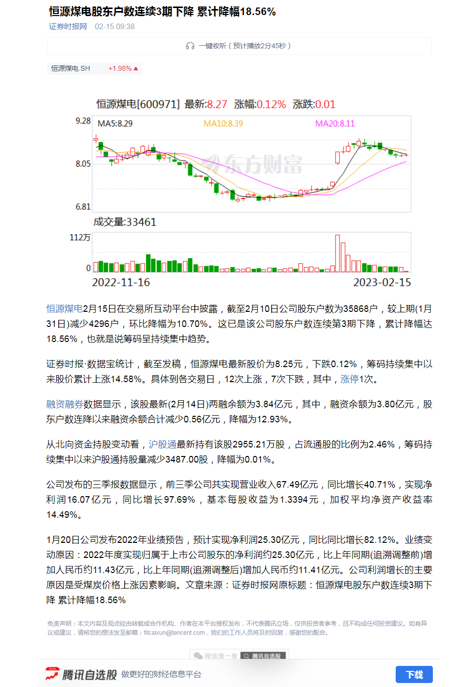 证券时报网:乐鱼煤电股东用户数连续三期下降,累计降幅18.56%