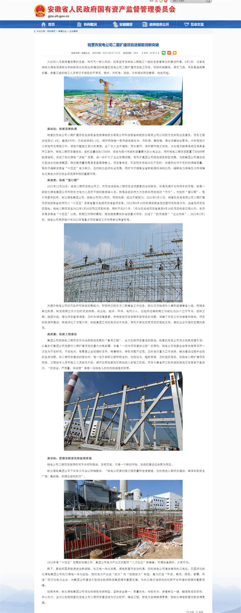 8月7日省国资委官网:钱营孜发电公司二期扩建项目进展取得新突破